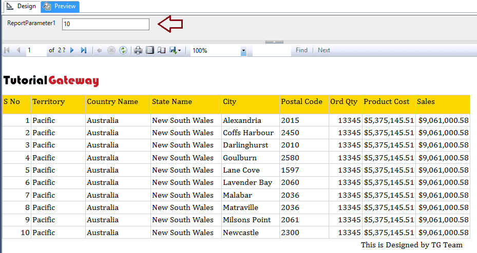 We can also use Parameters to insert page breaks in Reports or say, to restrict the display records. In this example, we will explain the same. Before you start, Please refer Parameters article to understand the steps involved in creating parameters.